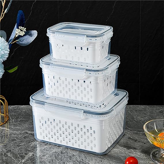 Food containers for fridge– there are different sizes of food storage containers that can meet your different kinds of storage and drain needs.