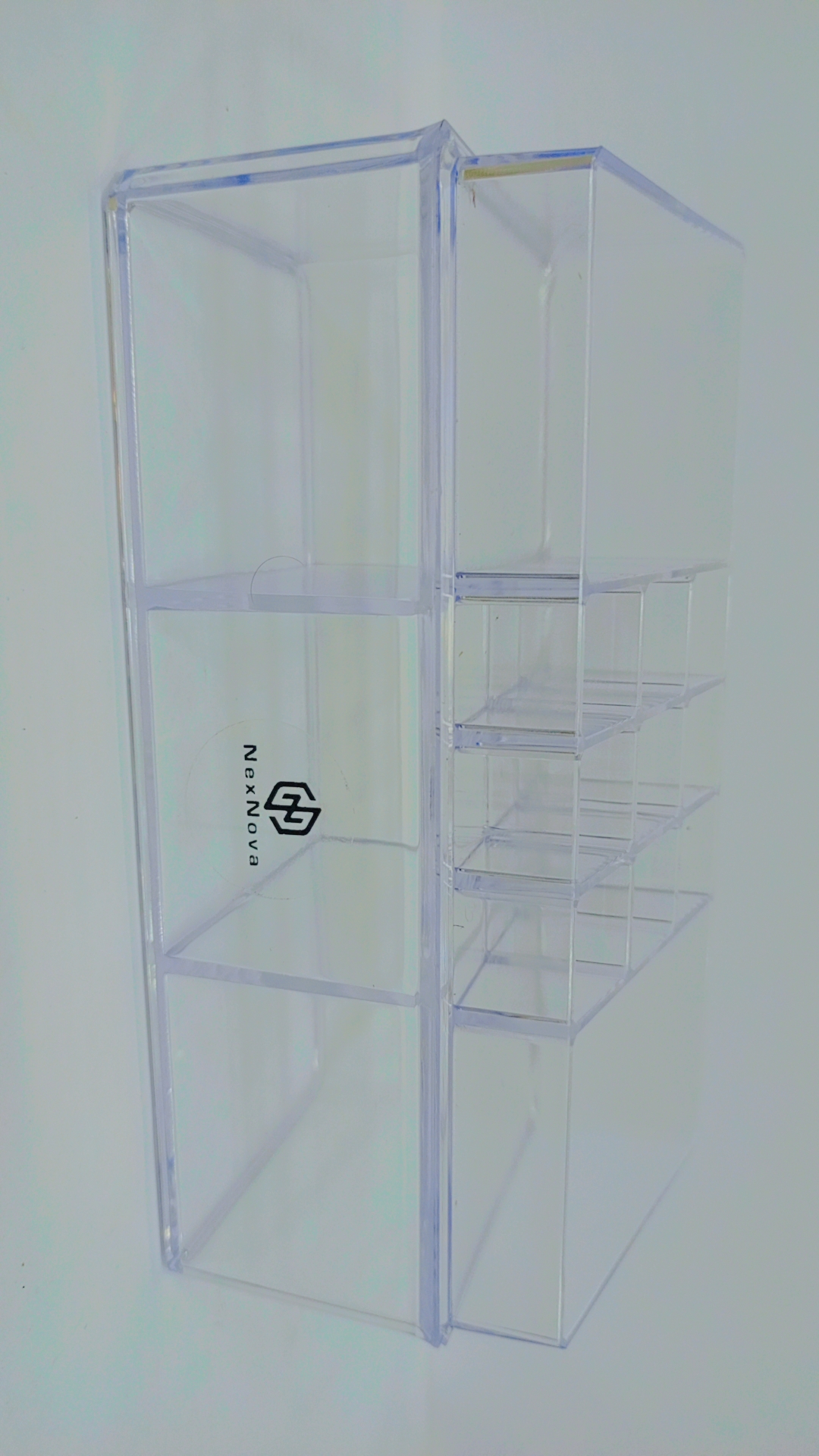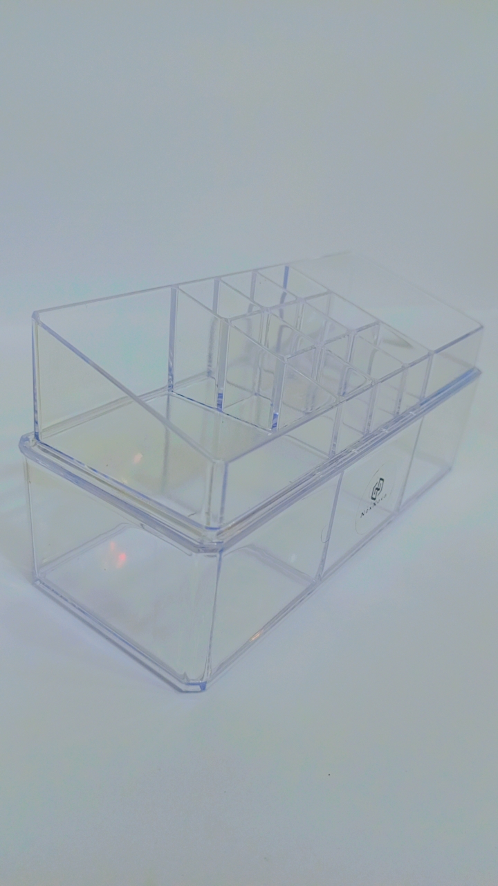 Whether it’s for storing makeup accessories or jewelry, our storage boxes are truly versatile. The small compartments of our clear boxes are perfect for nail polish, mascara, eyeliner or lipsticks. Thanks to the practical design of the makeup organizer, you have direct access to your beauty products at any time. Thanks to their compact size, organisers can be found everywhere, whether in the bathroom, on the dresser or hidden in a drawer.