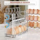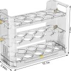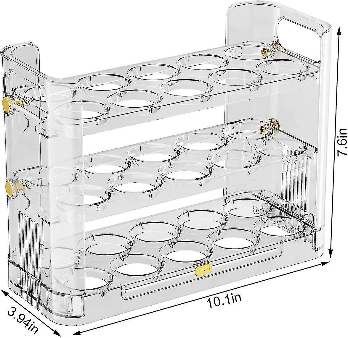 Flip-top egg rack for refrigerator: The tapered slots and one-egg-per-slot design hold each egg in place without worrying about bumping or rolling. The three-layer egg rack can store up to 30 eggs. When each layer is used, the top two layers can be flipped for easy access and placement of eggs. When you are not using it, you can disassemble the egg rack to provide a more convenient space. MAXIMIZE SPACE: The egg rack has a countertop with dimensions of 10.03 The compact design fits easily into any refrigerator, bookshelf, or countertop. Help you save more space. PREMIUM MATERIAL: The egg tray is made of sturdy PET plastic, strong and lightweight. Handles on both sides make it easy to pull out and transport. Neatly organize your refrigerator, freezer, pantry or countertops and eliminate any loose or fragile eggs. Transparent design makes items in the tray clearly visible. Fits Most Refrigerators: Compact design (only 4.01 inches thick) fits most refrigerators. The perfect solution for egg storage boxes in refrigerators, kitchens, cupboards, tables and restaurants. Easy to use and clean: The clear refrigerator egg cartons bring more convenience to your life, no need to take out everything to clean the refrigerator or pantry, just hand wash these refrigerator egg cartons with mild soap and warm water. These home and kitchen storage boxes are not dishwasher safe, do not place in the dishwasher.