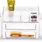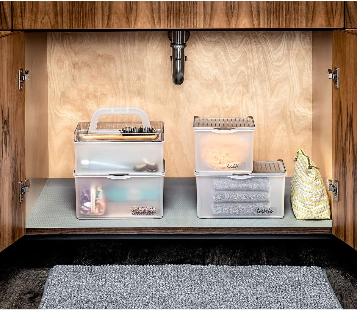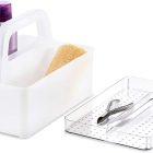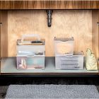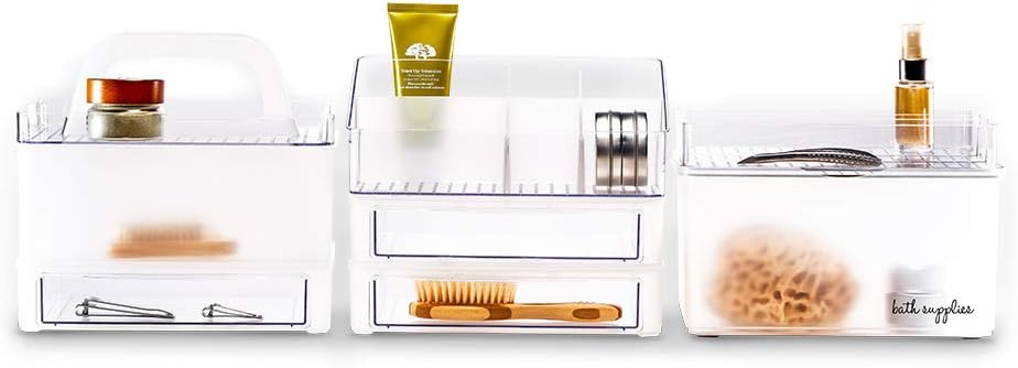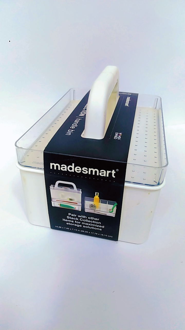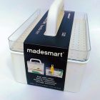 The madesmart Stacking Caddy provides a modern solution to traditional caddy storage. Discreet item storage in the main compartment and ready to use space with the companion tray. Stacks neatly with other madesmart Stack Collection favorites like the Stacking Drawer or Stacking Bins A women owned company. 10.38 x 7.00 x 7.13 in (26.35 x 17.78 x 18.10 cm)
