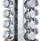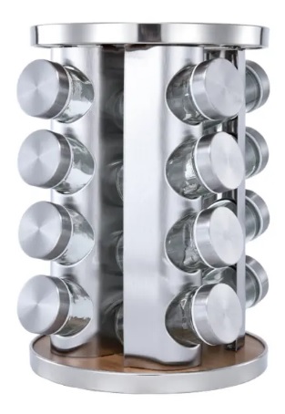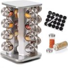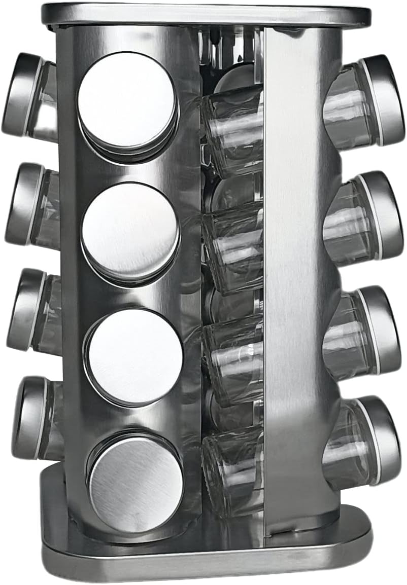 ☻Safe and environmental-friendly material: We use High quality 100% stainless steel, rust resistant, robust. The spice rack is dust resistant and moisture-proof and has the excellent sealing performance ☻Premium Quality Glass Bottle: Premium heavy duty glass spice bottle jars. Glass jar is food grade material. ☻360-degree rotation function: It’s important feature a revolving design, saves more space and is easy to use while cooking and keeping spices fresh. perfectly proportioned to fit into narrow spaces ☻Very good cabinet organizer Sturdy and useful spice rack, help you find the spice you need easily, for cabinet, countertop. ☻ANTI-SPRINKLING: When the seasoning tank is placed in the seasoning rack, the tank mouth of the seasoning tank will be inclined upwards to prevent the seasoning in the tank from falling Have all the ingredients at your fingertips when cooking Stand Material: Stainless Steel Pots material: Glass and stainless steel It has 16 glass jars that have a lid in Stainless Steel that store on average 80 grams of seasonings, Approximate Measurements: 28 x 17 x 17 cm