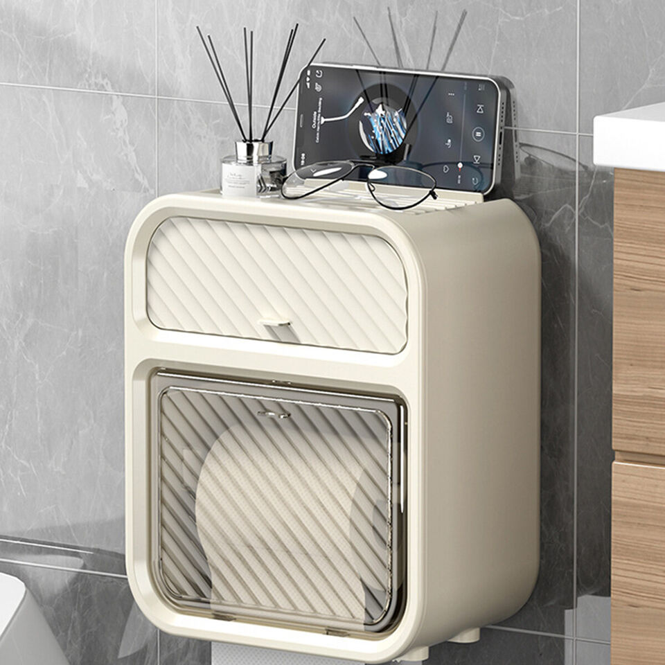 Clean for Toilet Use: The 360 degree full coverage ensures no water entering thus wetting the paper roll, very safe and clean. Easy Tissue Changing: Front door is very convenient to open, making the changing much easier, and the paper roll will not fall. Space Saving Storage: Drawer design together with top holding space will better facilitate the storage for phone, waste bag, etc. The Premium Material: Using premium ABS and PS material with a stylish look, the tissue holder is odorless, durable for long use. Simple Installation: Light in weight and compact in size as well, the toilet paper holder enables hole free installation on wall.